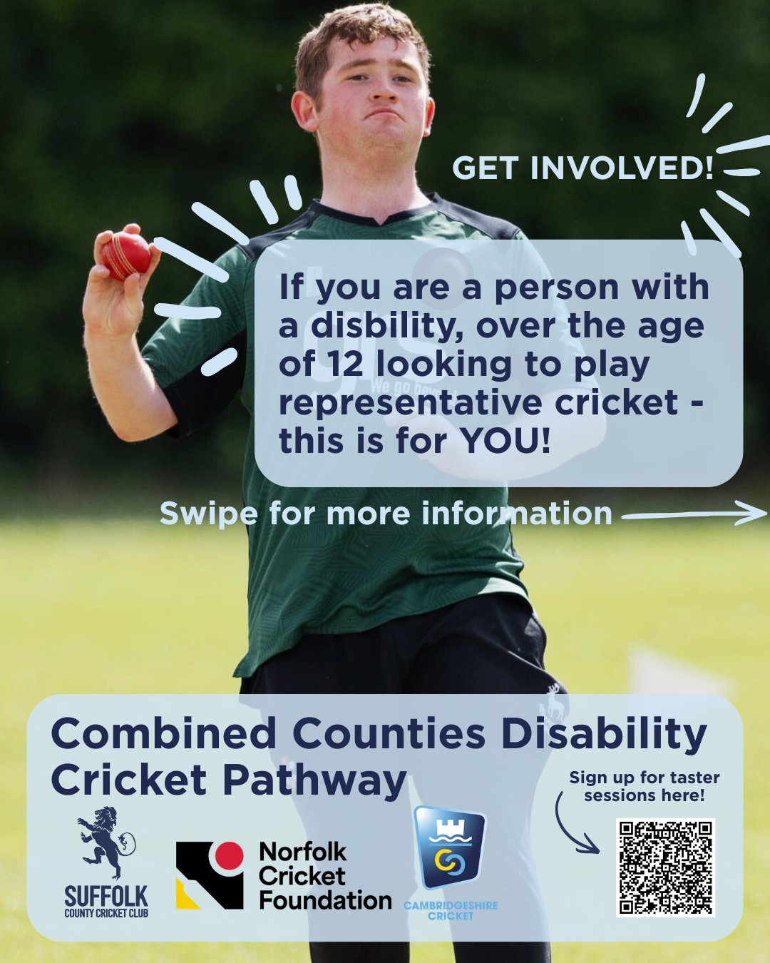 February 24, 2026Suffolk, Cambridgeshire and Norfolk are combining to form a S9s Disability Cricket team (softball cricket). This will be a representative team for players aged 12 and over with a disability to play against other county sides. Initially, each county will host a taster training session with the intention of regular sessions moving forward.